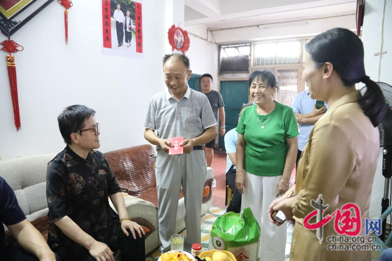 圖為江西省銅鼓縣委書記李勇軍(左一)與以孝治家運動倡議人、總謀劃包養網心得吳紅(左三)一行在年夜塅集鎮社區慰勞。杜添輝攝影